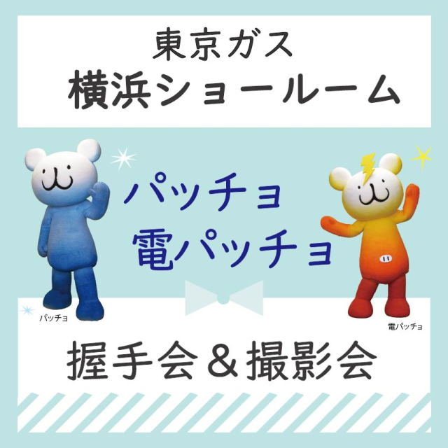東京ガスのオリジナルキャラクター パッチョと電パッチョが横浜ショールームに遊びにきます。