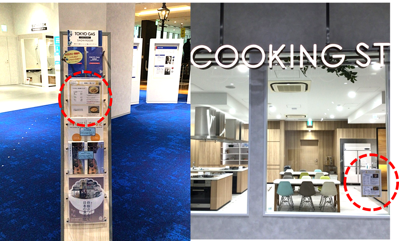 ■設置場所:ショールーム入口(画像左) クッキングスタジオ前(画像右)